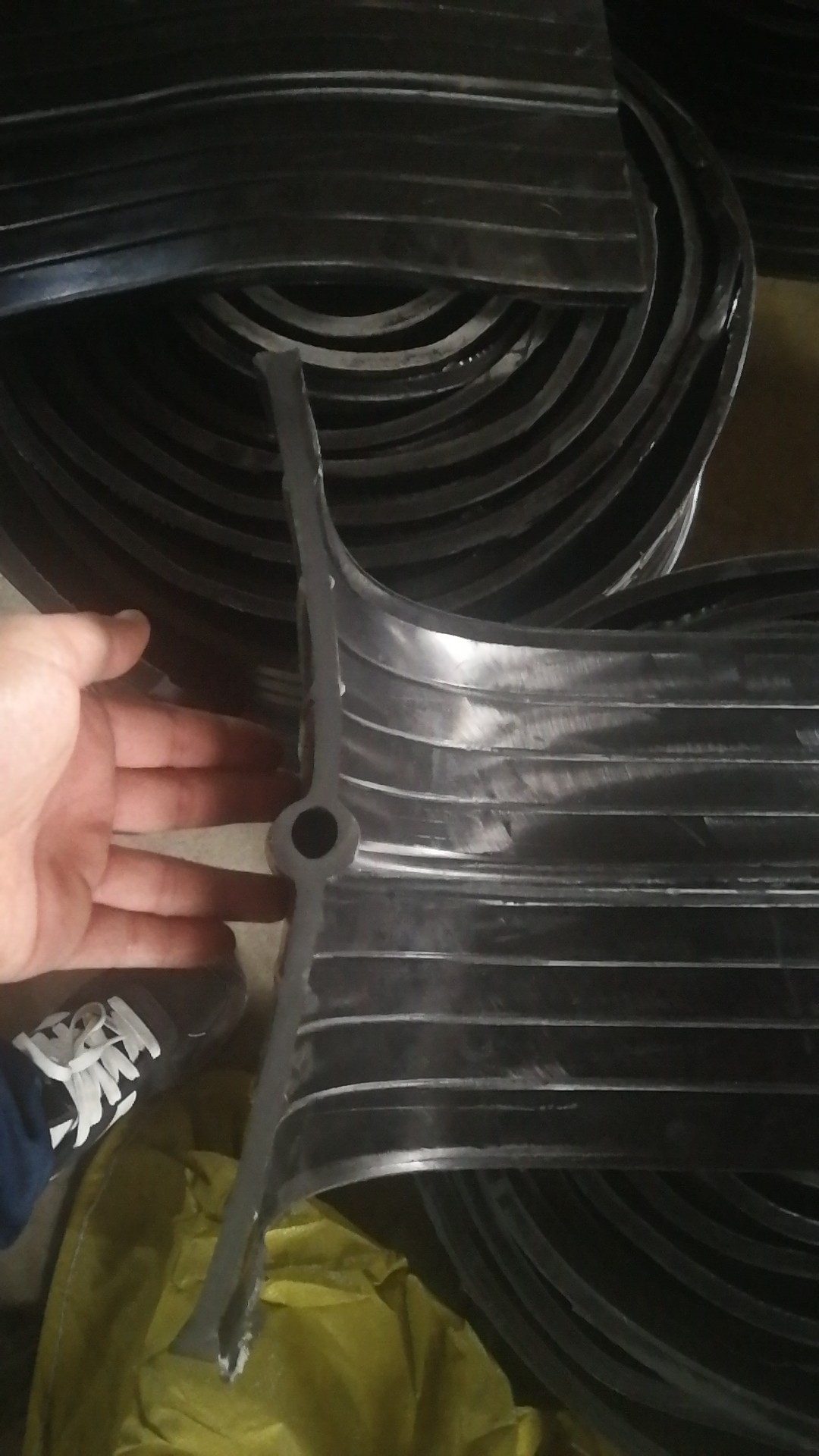 橡膠止水帶是利用橡膠的高彈性和壓縮變形性的特點(diǎn),在各種載荷下產(chǎn)生彈性變形,從而起到有效緊固密封,防止建筑構(gòu)造的漏水、滲水及減震緩沖作用。在一般較大工程的建筑設(shè)計(jì)中,由于不能連續(xù)澆注,或由于地基的變形,或由于溫度的變化引起的混凝土構(gòu)件熱脹冷縮等原因,需留有施工縫、沉降縫、變形縫,在這些縫處必須安裝止水帶來(lái)防止水的滲漏問(wèn)題。止水帶主要用于混凝土現(xiàn)澆時(shí)設(shè)在施工縫及變形縫內(nèi)與混凝土結(jié)構(gòu)成為一體的基礎(chǔ)工程,如地下設(shè)施、隧道涵洞、輸水渡槽、攔水壩、貯液構(gòu)筑物產(chǎn)品